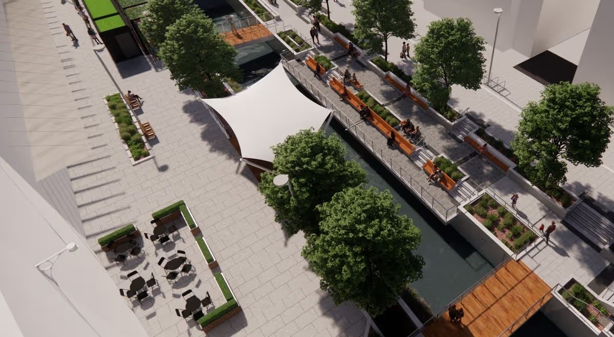 The regeneration project is at Phase 1 including the opening of the Canal waterway on Churchill Way.